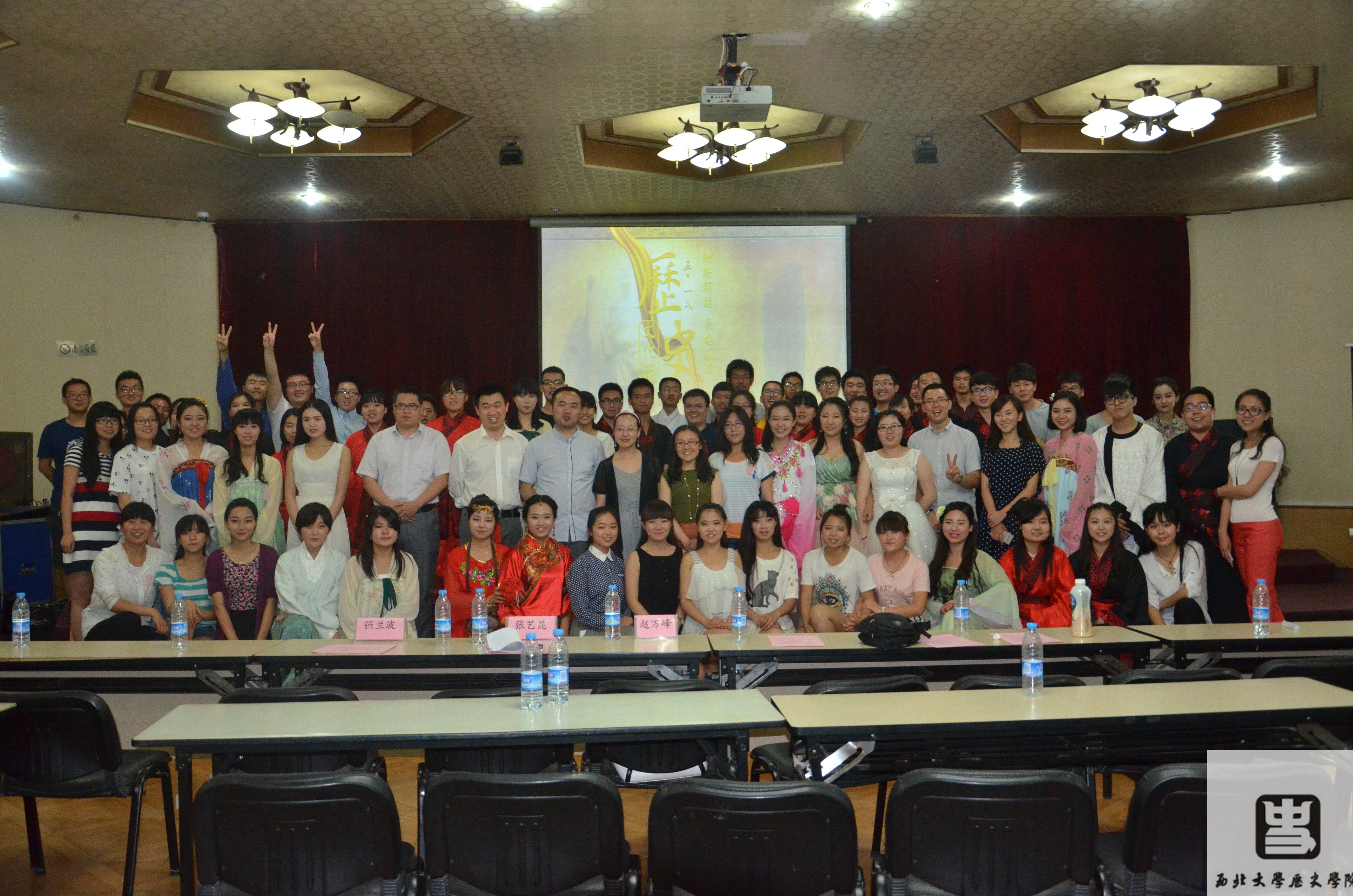 为庆祝2014年6月22日,由中哈吉三国联合申报的丝绸之路“长安—天山廊道网”成功申报世界文化遗产,我院此次特以“丝路旖旎,长安风华”为主题,举办5.18历史文化节。在掌声雷动中,5.18历史文化节闭幕晚会以一支古典舞开场,之后还有歌曲《丝路》、古筝表演《北方有佳人》、话剧《凿空西域》、新疆民歌弹唱、书韵、西域舞蹈串烧、唐长安情景剧、古筝表演《春江花月夜》、歌曲《龙文》、诗经吟诵、古典舞蹈《雅乐寻踪》等精彩节目,不断将晚会气氛推向高潮。最后,晚会在由西北大学776net必赢官网 “爱渡”志愿者团体集体演唱的《贞观长歌》中落下了帷幕。其中话剧《凿空西域》以张骞出使西域为背景,结合史料,加上同学们精湛的演技,真实有力地反应出西汉初期张骞为联合大月氏夹击匈奴而出使西域这一史称“凿空西域”的历史事件,赢得了观众的阵阵喝彩。表演期间,776net必赢官网还特地推出“微信墙”互动平台,加强了观众的参与度,为晚会增添了许多乐趣。